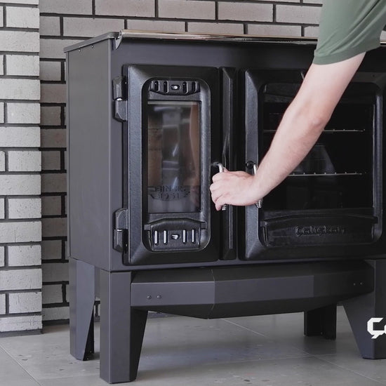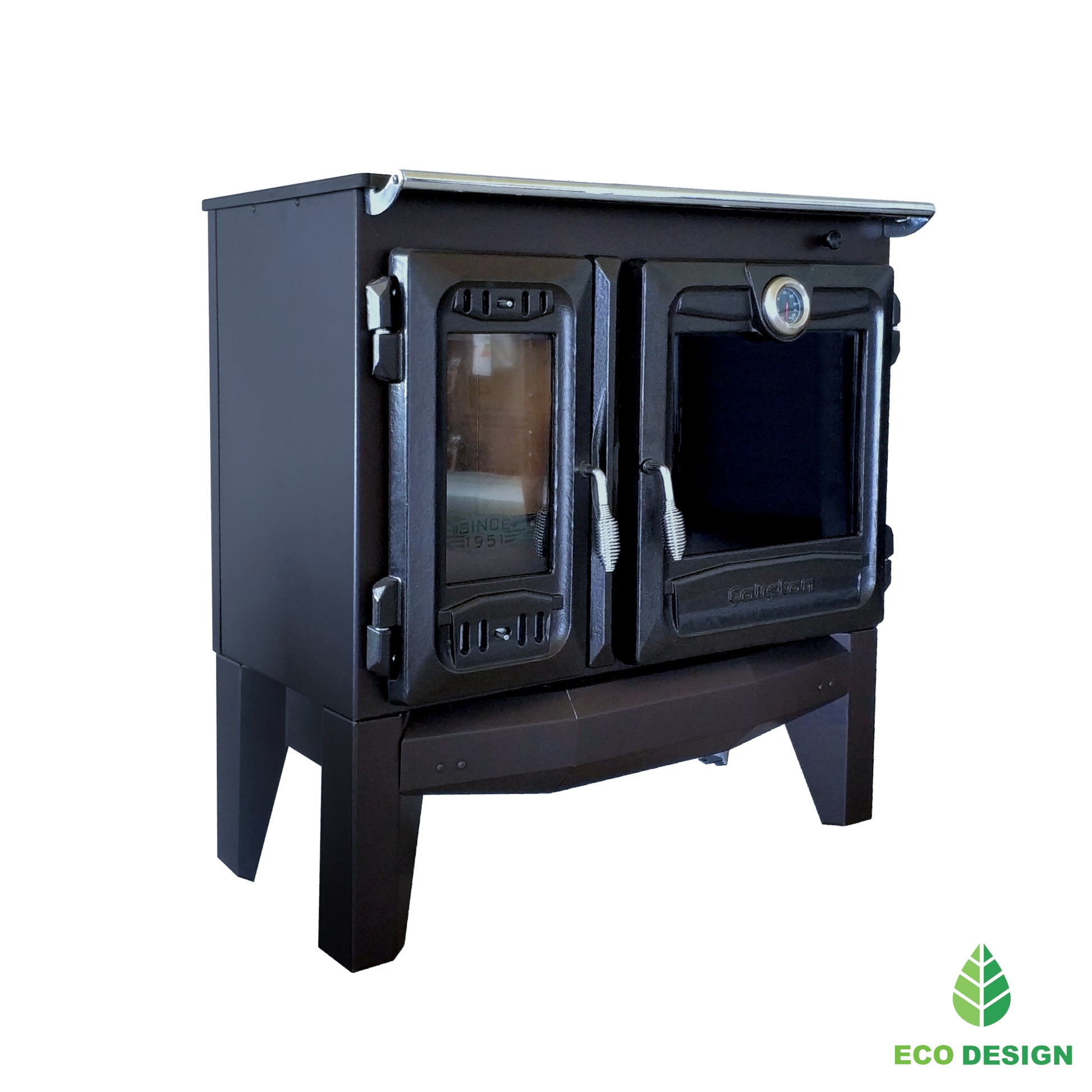 Ein hochwertiger Gusseisen-Holzofen mit integriertem Backofen und massiver Kochplatte. Ideal für Wohnräume, Ferienhäuser und traditionelle Küchenkonzepte. Der Ofen vereint effiziente Wärmeleistung, robuste Verarbeitung und echtes Holzfeuer-Kochen.